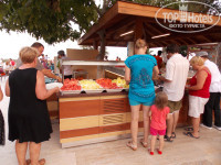 Между обедом и ужином по расписанию есть – печеный картофель, турецкие лепешки с начинками, мороженое( оно раздается возле амфитеатра), пончики… Ешь – не хочу! Ужин – стол уже с измененным меню, но тоже всего вдоволь, фрукты, овощи, салаты, сыры, сладости, и т.п.