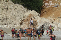 Пляж – мелкая галька, как крупная соль. Не очень удобно, вход в воду сначала пологий, потом «ступенька», и уже глубина метра 2,5. Мелкий все-равно тусил на берегу в волнах, а меня галька напрягала, может это лично мое, индивидуальное… Бассейн - не большой, но разделенный по глубинам, так что деткам разного роста есть варианты, от 40 см. до 2,2м. Есть джакузи, по расписанию. Горка работает по расписанию – так себе, прокатиться можно пару раз… Но детям нравится.