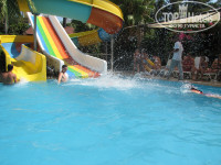 Питание достаточно однообразное, но вполне съедобное. У нас кормление ребенка затруднений не вызвало, да и сами питались сносно - с утра аладушки, йогурты, амлеты, яичница, салаты, арбуз, колбасна нарезка и срыная. На обед - суп-пюре (довольно вкусно особенно с местным воздушным хлебом), вермишель, зажарка или тушеное мясо (скорее всего, на нем варится бульон для супа), на ужин - помимо всего - блюда от шеф-повара (вот тут начиналась давка, хотя ничего особенного не было)). Котлеты и колбаса либо из говядины (редко) либо из соевого мяса. Достаточно много курицы, некоторые дети набирали огромными тарелками картофель фри. Довольно вкусная выпечка. Из фруктов нам перепали яблоки, арбузы, дыни, персики, сливы и один раз - виноград. Возле бассейна сначала жарили пицу (или местную или европейскую), но это удовольствие быстро закончилось и остались лишь молочные коктейль на основе Айрана и куллер с водой, напитки в баре. На море пекли лепешки, но это скорее слоеное тесто с прожилками начинки, чем лепешки.