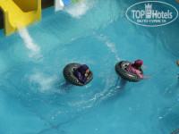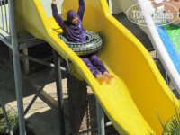 В отеле три больших раздельных бассейна и два маленьких лягушатника, территория достаточно зеленая - милые пальмочки, фикусы... Но затенения не хватает. Так на детской площадке практически нельзя катать ребенка с горки - попу обжигает (да и сама площадка заброшена и давно устарела). На территории чисто, за чем следит достаточно многочисленый персонал, но, к сожалению, не говорящий по-русски. Немного понимает по английски управляющий, но сколько мы к нему не обращались - наших проблем он не решил. Познакомились с арендатором хамама Лилей и по всем вопросам обращались к ней, она советовала как решить. Вообще персонал очень дружелюбный и очень любит детей.