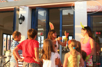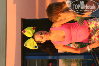 В ресторане хорошо кормят, но неудобно обходить полресторана, чтобы набрать еду. На обед порой фрукты вообще на террсе нарезали (арбузы, дыни). Клуб Калимера располагается на большой детской площадке и они здорово занимаются с детьми. На сследующий вечер к нам в номер прислали приглашение посетить Клуб Салют в отеле Nostos Mare ( это в 300 м от нас), Мы на ресешн вызвали минибас и отправились на русскую анимацию в соседний отель. Со своими, с русским языком совсем другое дело.