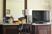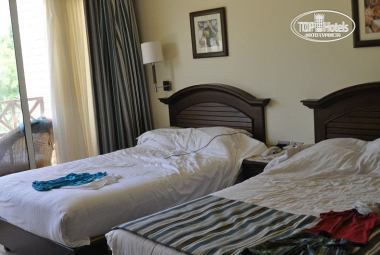Номер, то есть бунгало (там только они) нам достался новый, отличный, надо сказать. 4221. Расположение бунгал там примерно такое: 1 линия номера 41**,31**, 21**, 11**, 2-я линия - 42**, 32**, 22**, 12**, и т.п. 1 линия самая ближняя к морю, но надо сказать и от нее до моря порядочно. вообщем самим номером мы остались довольны. Все новое. Мы познакомились там с отдыхающими, они жили в номере 3511, так вот это уже старый фонд. Если у вас эелектронный ключ - номер новый, обычный - старый. Возьмите карту любую, дисконтную, чтобы вставлять ее вместо ключа в конциционер, это удобно. Ничего в номере из еды даже сок оставлять нельзя, сразу наползает куча муравьев. Два раза были замечены огромные тараканы, наверно из системы кондиционера попадают в номер. это конечно неприятно. Фото я потом приложу. Вообщем первый раз такое колличество живности наблюдали, везде обычно травили. Но в этом отеле видимо этим не занимаются.