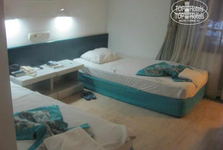 Негативным моментом оказался (как в прочем и ожидалось) момент поселения. Не смотря на все просьбы и предложения, поселили нас на первые 2 дня в номер без балкона с видом на дорогу. Но отель был реально переполнен, кто поселялся в этот день после нас, селили в другой отель. Но через 2 дня нас переселили в хороший номер с видом на море, и это было чудесно. Номера стандартные, небольшие, но, впрочем, больше и не нужно. Телевизор плазма, кондиционер мощный - все работало отлично.