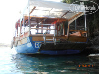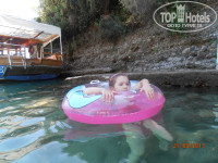 Впервые мы пошли на общий пляж, не зная, что у нас есть собственный! Свободных лежаков у моря не найти, но когда мы оказались на нашем пляже, то проблем таких не возникало. Наш отель расположен так удобно, что ходить как до одного, так и до другого пляжа минут 5. Песочек мелкий, чистый, ходить по нему одно удовольствие! Купаться в море удовольствие еще больше! Вода настолько прозрачная, что видишь мелких рыб, проплывающих мимо ног. В дальнейшем мы их кормили хлебом, это было очень интересно для нашей дочки! Каждый раз мы чередовали пляжи, нам нравился наш, уютная бухта, кстати к нам каждый день заплывал экскурсионный кораблик, на котором мы тоже прокатились за недорогую плату! А дочери нравился общий, так как там волны были наиболее высокие, но после него все содержимое купальников было наполнено песком. Возле пляжа находится еще один бар- снек бар. Там можно перекусить с 11 до 16 часов, мы этого не делали, так как были сыты, только пили там айран.
