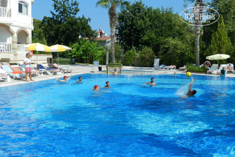 Возле бассейна практически не были, но там с лежаками тоже проблем нет, не надо бежать в 7 утра занимать места)). Возле бассейна постоянно бегают, прыгают аниматоры, водная аэробика, гимнастика, различные конкурсы, постоянно играет музыка, очень весело, анимация совсем не навязчивая, не хочешь участвовать не участвуй, но всем совет участвуйте, очень весело!!!)) Аниматоры очень классные, заводные и веселые. В течении дня работает беседка для детей, там с ними занимаются аниматоры, рисуют, что то там лепят и т.п.)
