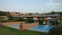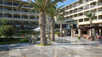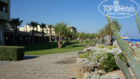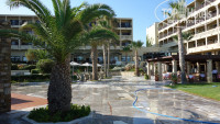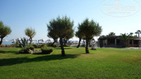 Очень большая! Зелёная, ухоженная. Есть где прогуляться вечерком после ужина. На территории пару магазинчиков в том числе и с сувенирами и по нормальным ценам! Напротив отеля улица с разными тавернами, магазинами сувенирной продукции, аптека и т.д.