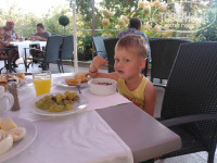 Отдыхали семьёй (я, муж, ребёнок 4 года). Приехали мы в 12:00 дня, заселили нас в 14:00. Номер чистый, красивый, аккуратный, имеется кондишн, холодильник, но не было сейфа, хотя он нам и не понадобился - деньги смело оставляли прямо на столике в номере, уборщица в это время заходила, деньги оставались всегда не тронутыми. Еда хорошая, у меня даже ни разу не вздулся живот, но я и выбирала что полегче,без специй. А так вообще, есть блюда на любой вкус: для тех, кто любит жареное, со специями, для тех, кто этого не ест и даже ребёнка было чем кормить. Хотя он в основном лопал картошку фри. До моря минут 5. Вокруг куча палаток с китайскими шмотками и всякими сувенирами, украшениями. Много различных клубов, кафешек. Для молодежи просто рай! Для детей тоже куча развлечений: паравозики, батуты, машинки, колесо обозрения и т.д. Орущие под окнами пьяные немцы - да, имеются! Иногда орут, но если закрыть окно, то их не сильно слышно. В отеле 3 бассейна, расположены ступенчато, один из них детский. Спортзал в отеле есть, но состоит всего из трёх тренажёров, на фото у меня все они есть. На пляже есть платная зона и бесплатная. Лежаки все только платные, матрасы тоже.