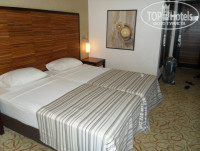 Приехали в отель в 10 часов утра. Отдали на рецепшн 40$. Сразу же заселили, не пришлось ждать до 14:00. Номер дали на 5м этаже №1530. Номер отличный! Чисто, мебель не испорченная, ванная хорошая. Вид тоже понравился. На бассейн и амфитеатр. Перед ужином были перебои с горячей водой, один раз вообще вода закончилась в процессе мытья. Нас это не расстроило, посмеялись, спустились вниз где крытый бассейн и там ополоснулись)))) Номер убирали нормально, делали из покрывал и полотенец всякие цветочки. Белье и полотенце меняли вовремя. Оставляли по 1$. Один раз сделали лебедей, после того как 2 дня оставляли чаевые, один день не оставили, а потом на 4ый оставили и сразу появились на нашей постели лебеди))))
