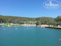 2. Очень грамотно спланировано место для малышей (детский клуб+детский бассейн+игровая площадка+амфитеатр) – все находится далеко от остальных бассейнов, но близко к пляжу, огорожено отдельными заборчиками, поэтому можно быть уверенным, что ребенок никуда не убежит, не прыгнет случайно во взрослый бассейн и не кинется под качели. При этом когда ждешь начала детской дискотеки, то дети играют на площадке рядом с амфитеатром. Кстати, до дискотеки еще минут 20 показывают мультики. Детские бассейны при клубе глубиной 55 и 35 см, имеют три горки для деток. Очень быстро прогреваются на солнце.