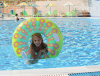 Отдыхали с дочкой в июне 2013 года. Выбрали этот отель исходя из цены и близости к городу. Отель, в принципе, неплохой. Есть свои плюсы и минусы.Расскажу поподробней. Приехали мы около 10 часов утра, промурыжили нас с заселением до 12. Очень нелюбезная девушка на ресепшене дала нам ключи и план, и потащились мы до корпуса Геркулес со своей сумкой по лестницам. Номер нормальный, холодильник, кондиционер(работает только в высокий сезон, объяснила нам барышня с ресепшен) две кровати, телевизор, балкон. Уборка в номере нормальная, смена полотенец по требованию. Питание в ресторане...После очередей в Турции за едой почти пустой ресторан нам показался раем. Еда вся очень вкусная, несколько сортов мяса, рыба, овощи всячески приготовленные, очень вкусный соус дзадзики, мороженое детям, соки, ненатуральные, конечно, но вполне ничего. Анимация вполне приличная. Интернациональный состав:полячка, чешка, немец, русские. Развлекали и детей, и взрослых. Я ходила и на йогу, и на аквааэробику.