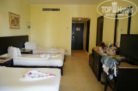 Номера и заселение: Номер дали сразу без каких-либо доплат на троих в главном корпусе: с тремя кроватями, балконом с видом на море и главный бассейн. Номер 530-ый был, на 2-ом этаж, хороший! Только если не обращать внимание на всякие мелочи, на тараканов в ванной комнате и не выключать свет ночью в ванной, чтобы они не бегали. Привезите с собой лучше всего средство от тараканов и сами побрызгайте им в ванной. Уборка была ежедневной, полотенца пляжные, банные и постель менялись. Бар пополнялся на каждого человека 1-ой бутылкой воды, 1-ой газировкой и 1-им соком ежедневно. Только если вы не выпиваете, к примеру, сок или воду, уборщик их не доставляет. Поэтому мы иногда напитки убирали в чемодан. Шампуни, кондиционеры, мыло, утюг(с возвратом), чай и кофе нужно у персонала по уборке просить, а то они там все забывчивые. Карточку-ключ от номера дали одну на троих, это было неудобно и через несколько дней нам дали вторую карточку.