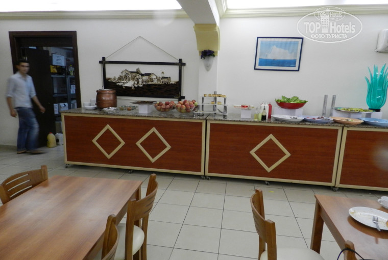 ПИТАНИЕ:к сожалению очень разочаровало,выбор совсем скудный,цветная капуста раз в три дня была и то проквашенная,наш ребенок который всегда на ура ест лапшу,здесь ее просто выплюнул!Из фруктов за 4 дня были только яблоки!Единственный раз была ооочень вкусная шаурма,ну или мясо для нее в общем на вертикальном вертеле готовили.А еще по вечерам давали вкусное мороженное.С голода конечно не помрете,но столовая меня очень расстроила!Мухи ползают по еде,такого я в других отелях не наблюдала.Повар добрый малый,но ходил постоянно в грязной форме(такого я не видела ни в Турции ,ни в Египте)Благо рядом есть кафе где можно перекусить.Первый раз в жизни я откармливалась с семьей после отдыха дома)!Ну да ладно хорошо,что мы пробыли там всего 3дня!А еще почти все кружки в столовой с отбитыми краями.Кстати когда я фотографировала так называемое изобилие,женщина спросила у меня с ехидцей мол вы тоже отзыв писать собираетесь)Она как и мы была в шоке от выбора блюд.Есть кстати один секрет,если несколько раз подойти к месту с пустым лотком где должно стоять горячее,то повар все таки его вынесет!Есть и плюс у столовой,в ней ловит вай-фай ,и только благодаря ему мы кормили ребенка.