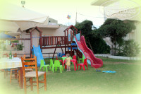 Добрый день, дорогие туристы, которые думают ехать в этот отель с детишками или нет) Определенно ДА! Мы ездили семьей с двумя детьми 1,2 и 4,7. Удобно было всем, в ресторане есть стульчик для маленькой. Это прекрасный отель, с хорошей большой территорией, с детскими площадками, много бассейнов, еда целый день, в общем для детей это супер! Единственный минус это вход в море, он из булыжников, конечно хотелось бы песочек. Мы жили в бунгало на первом этаже, тишина и покой, детки спали днем, ни что не беспокоило. Вечером ходили гулять по набережной, обязательно съездите в Ханию, это красивый старинный город, лучше ехать часа на 4, потому что есть где погулять. Всем советую, очень понравилось.