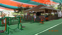 Детская площадка. Спасибо за тент над площадкой. Я не боялась,что моя дочь так долго проводила время на свежем воздухе, так как от солнышка была спрятана. Она пока не оббегала все тренажеры,качели,горки, песочек на несколько раз, оттуда не уходила. Родителей детская площадка утомляет,а деткам полный восторг.