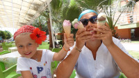 Питание- разнообразное, мясо разных видов,рыба, очень много овощей как тушеных, вареных,так и свежих. Диет стол хороший. Огурцы безумно понравились. Голодным не останешься. Выпечка- пальчики оближешь, от разнообразия глаза разбегались.Единственное пожелание- включите в меню блюда русской кухни (не хватало наших борщей, пельмений, блинов, иногда очень хотелось). Еды очень много, выбираешь и выбираешь. Алкоголь,чай,кофе, вода,пиво- всегда и сколько хочешь. Витаминный бар+мороженое- любимое место перекуса. Айран течет рекой в 3-х местах на территории отеля. Пили айран литрами. Особое спасибо женщинам,который выпекали лепешки,всегда с улыбкой. Ваши лепешки часто заменяли нам обед,мимо пройти было сложновато. Арбузы,дыни,яблоки,виноград,груши- весь день. Ребенка накормить было легко,но моя дочь кушала исключительно арбузы.