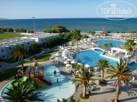 Такое расположение обеденного ресторана весьма удобно,так как в это время большинство отдыхающих находится у бассейнов или на море,и не всем хочется идти в номера для смены одежды.