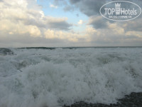 Первые дня три море очень штормило, никто из отдыхающих не заходил в воду выше коленей, потом волны стали поменьше, и мы с удовольствием в них купались.