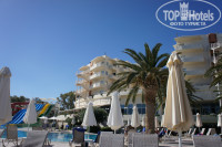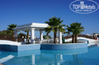 44. Теперь по очереди. Территория отеля небольшая, но зеленая. Есть все - от горок до пляжа. Три бара, возле пул-бара обед проходит. Рядом еще пиццерия. Большой бассейн разных глубин сложности, есть еще два детских по 30 сантиметров и который с горками. Спасатели дежурят везде. Горок пять. Полосатая с бублами, синяя на ковриках. Остальные со стыками - заднице больно. Мест хватает, зонтиков тоже.