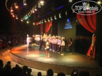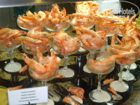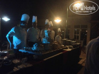 Еда в ресторане замечательная, большой выбор мяса и на обед, и на ужин. А сладости супер, я все так и не смогла попробовать. Все очень вкусно. Хвала шеф повару. Каждую среду проводят день отеля, в ресторане подают королевские креветки. В наше посещение гала вечер был 25 сентября (среда). После представления в амфитеатре всех пригласили в пул-бар около бассеина, там генеральный директор отеля сказал речь на турецком и на русском языке, и сам стал разливать шампанское по фужерам, а повара приглашали отведать торт мороженое.