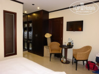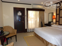 Номер в бунгало средней величины, огромное окно закрыто двойными солнцезащитными шторами, стекло зеркальное снаружи, так что днем, если открыть шторку со стороны улицы не видно, что происходит в номере. Единственный минус - неудобно расположен кондиционер, дует прямо на кровать. приходилось ночью выключать, а жарковато.