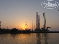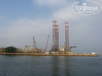 Вода в заливе не голубая, а коричневатая, т.к. он с закрыт от волн тремя большими дамбами, волн вообще нет! Но и вода не сильно циркулирует. Напротив пляжа, через пролив - большой судоремонтный завод, он немного шумит. Все время мимо проплывают суденышки, иногда с них, видимо, сбрасывают мусор и пару раз к нам на пляж приплвали пакеты полиэтилен., стаканчики, луковицы - персонал полдня чистил море, это не очень приятно, но на другой день чисто было.