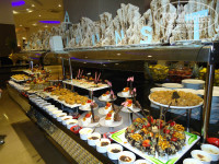О питании детей я писала отдельно, что же касается взрослой кухни, то она конечно на любителя, много острой пищи. На завтраки яйца и различные производные от них ))) сосиски, тосты, сыры, оладьи. Всегда одно и то же. Обед поинтересней. Ужином я, как правило, оставалась, довольна. Выбор большой и мяса, и рыба есть, и салаты... Из изысков жареные перепела, красная рыба, один раз были креветки. Сладостей всегда много и всегда вкусно! Можно пару раз бесплатно посетить рестораны по предварительной записи, но мы с маленькими детьми не ходили. Шампанское у них оч.вкусное! Вино и пиво так себе.