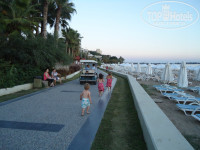 По поводу «первой линии». Моря из отеля не видно вообще! Разве что из каких-то отдельных номеров и лишь краешек. До моря идти пешком минут 10! Правда дорога вполне приятная, в полутени, через цитрусовую аллею, детскую площадку, и другие отели, находящиеся уж точно на первой линии!