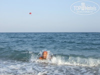 О море. Море тёплое и чистейшее. Пляж чистый. Заходили на соседние пляжи - вот там реально грязно: окурки, пакеты, пластиковые стаканчики, объедки. Свободные лежаки были всегда. А если утащить лежак подальше от курящей и орущей братии, то можно даже немножко вздремнуть на ласковом солнышке! ))) Правда три дня был сильный шторм и ледяной ветер. Разнесло пол пирса... Никто не купался и пляж размыло до камней. Но за два дня всё восстановили и намыли новый песок специальной трубой. Плавали смотреть, как работают водолазы.