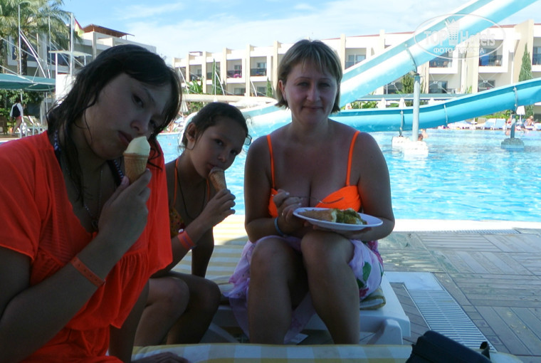 Питание отменное, много фруктов, наедались просто до отвала, хотелось все попробовать, сладости - пальчики оближешь. К питанию даже придираться не хочется, такого изобилия я нигде не видела, все очень вкусно. В главном ресторане почти каждый вечер тематические ужины. то китайский, то итальянский, то турецкий... Ходили в два ресторана а-ля карт, у нас одно посещение было плюсом, хотя так - один ресторан в неделю. Мы ходили в китайский и итальянский. Обслуживание в обоих - на высшем уровне, к детям такое отношение!!! Они как принцессы были. Но кухня в итальянском вкуснее намного. Лазанья, спагетти с соусом, салат Капрезе... - ммм, пальчики оближешь. В китайском суши - ужас, вкусные были только рулетики капустные какие-то, прямо как пирожки у моей мамы.