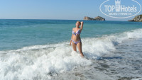 Ездили: я, две моих дочери, 8 и 13 лет, и моя соседка. Заселили нас около часа дня, мы прекрасно знали, что заселяют обычно в это время, поэтому мы преспокойно оставили вещи в в камере хранения, переоделись и пошли купаться. Пляж - огромный! Места хватает всем, лежачки, конечно, местами, были сломаны, но мы умудрялись находить целые. Лежаки не таскали к воде, как некоторые, лежали в тенечке, дойти от них до моря не составляло труда. Вода - чистейшая! Камни есть большие при заходе в море, можно обувь-то и надеть для купания.
