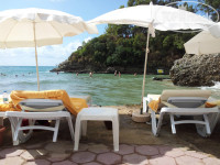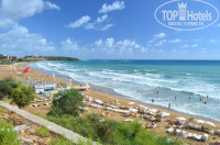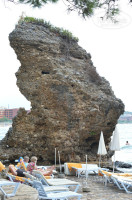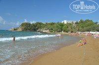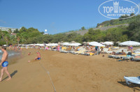 Пляжей два .Один большой и второй там где бухточка .Везде вход песчаный и пологий .Если на большом и были волны ,то в бухте их почти и не было .В бухточке уютнее ,но тут солнце раньше садилось за гору ,тогда как на большом можно было нежиться на солнце почти до вечера .