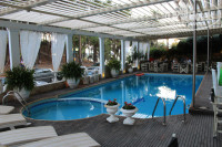 Отдыхали с семьей и друзьями. Долго добивались возможности попасть в этот готель, так как по фотографиям и отзывам он очень нам импонировал. Самое главное - мы не разочаровались. Особый респект туроператору в Греции - Музенидис Трэвел. Работают четко, слаженно. быстро. В аэропорту Салоники встретили, провели к автобусу и далее все по цепочке, вплоть до стойки на ресепшене. Общее впечатление об отеле - уютный "домашний" отель, аура очень приятная. Поселили быстро, через полчаса мы уже были на пляже. Кстати, до пляжа 2 мин. ходьбы. Пляж муниципальный, за пользование лежаком и зонтиком надо что-то заказать в баре. Как правило, все берут либо напитки, либо что-то поесть, в среднем по 3 евро на чел. Но можно и схитрить - мы часто брали по порции мороженого по 1,2 евро, что также засчитывалось. Еще раз повторюсь - сам отель очень уютный. Номера небольшие, но все, в принципе, есть. Можно придраться, что, мол, душевая кабинка маленькая, то что-то еще. Но все это мелочи, по сравнению с тем удовольствием, которое получаешь от пребывания там. Ресторан очень ухоженный, постоянно меняются скатерти на столах и накидки на стульях, сервировка отменная. А кухня - выше всяких похвал. Шеф-повар - воистину бог кухни. Очень приятный вообще, постоянно выходит в зал, контролирует наполнение лотков и наблюдает, как и что едят, пустые ли тарелки оставляют. Очень часто сам помогает набрать мороженое или десерт, если руки вдруг заняты. Меню разнообразное, был и поросенок печеный, и разная рыба. Очень вкусные и всегда свежие салаты. Мы брали только завтраки и ужины - так больше ничего и не надобно больше. Питание было настолько сытным, что нам вполне хватало. Очень понравился персонал отеля. Хозяйка каждый вечер "на посту", лично контролирует все, улыбается всем, старается создать настроение. Приятные девушки официантки и бармэны, особенно Ирина. Всегда улыбается и готова придти на помощь, если что-то непонятно. Практически всю информацию можно получить на ресепшине и у девочек. Относительно территории- практически она заканчиваеться за ступеньками отеля. Но она там и не нужна - сразу же можно прогулятся по поселку. Кстати, поселок очень уютный и приятный. Жители доброжелательные, улыбаются, очень многие нормально говорят по-русски.Кого интерессуют шубы - там их около 30 магазинов, но цены дорогие, хотя можно торговаться. О море - особый разговор. Такого приятного моря мы не видели нигде - даже Красное море не было таким ласковым, чистым. Возле буйка, а там глубина метров 8-10,если не больше - видно дно. Практически не штормило, иногда под вечер был легкий бриз. В принципе - это первый отель, куда хочеться вернуться вновь. Не знаю, получиться нам это, или нет, но детей туда отправим уж точно! Всем желаю отменного отдыха, а персоналу отеля - удачи во всем и здоровья! Большое спасибо за отдых!
