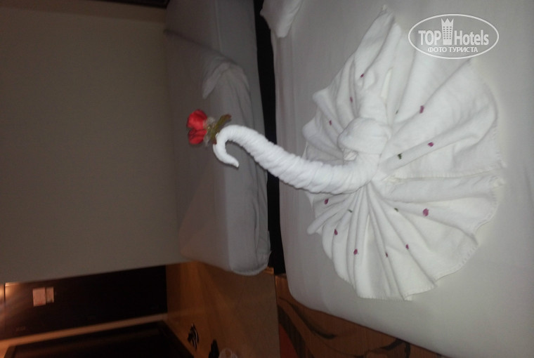 Номера были предоставлены с балконом, видом на центральный бассейн и море. В номере всё работало. Отдельное спасибо сотруднику отеля который каждый день убирал номер и конечно делал из полотенец фигурки (деньги не оставляли).