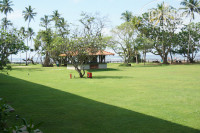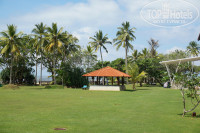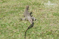Территория чистая, как и сам отель. Метут, убирают, чистят. Почти ни каких претензий. Разве что окурки встречаются на траве у бассейна. Но это культур-мультур отдыхающих. Бассейн чистый. Вода приятная. Глаза не раздражает. Сама територия не огромна, но ее вполне хватает. Тесноты и толчеи нет. В отеле есть охрана - стоит по периметру, вдоль забора. Охрана скорее от назойливых местных. Которые каждый день норовят вас куда-то отвезти. Прямо "День сурка": "Привьет! Маяк, черепаха"? И так каждый день. На территории обезьян я не видел. Зато ежедневно приходит колоритный варанчик! Сидит в тени под шезлонгами, откапывает жуков и дает себя фотографировать. Бегают бурундучки. Шезлонги можно тягать по территории. полотенца приносят быстро. И шезлонг норовят за тебя передвинуть, чтобы ты не переработался)))