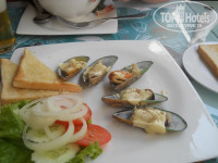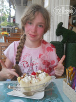 4. Питание в отеле - замечательно. Думаю, для такого, в принципе - небольшого отеля - питание - просто превосходное. Есть все: рис с овощами, картошка с овощами, рыба с овощами (здесь осторожно - бывает острая), мясо; тосты, омлеты-яичница; овощи; мюсли, молоко, йогурт; чай, кофе, фрукты - ананас, арбуз, папайя - очень хорошо завершают трапезу. Возможно, что-то забыла, но повторюсь - на завтраках голодными не останетесь, детки тоже будут сытые и довольные)))