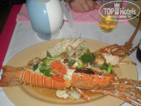 Дорога в торговый центр идет мимо рыбных ресторанчиков. Здесь, в тазиках плавают самые разные морские гады. Зазывали очень активно приглашают внутрь, это вездесущее "давай-давай")))) Однажды мы таки решили поужинать в таком ресторанчике: взяли лобстера, 2 какие-то непонятные креветки-каракатицы, полкило ракушек (ребенок потребовал); 1 фреш, 2 пива. Получилось 2 700 бат. Подходит только для "галочки": морепродукты там жарят в каком-то прогорклом масле, боильно засыпают овощами, типа вареной морковки и салата. Как-то не впечатлило. Но, для "галочки" пойдет.