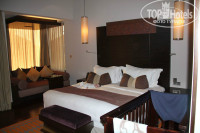 Мы бронировали Deluxe Lagoon View. Заселили в номер № 1922. Он расположен на втором этаже коттеджа, с видом на бассейн. Номера на первых этажа – с прямым спуском в бассейн. Но я не любитель купаться в бассейне, предпочитаю море, поэтому мы не стали переплачивать за выход к бассейну. Да и при желании можно было спустится со второго этажа и искупаться) Вход в номер – электронные ключи. Сам номер довольно просторный. Подсветка не яркая, приглушенная. В комнате огромная кровать, около окон небольшой будуар с мягким диванчиком и подушками, стол со стулом, большое зеркало, ЖК-телевизор. В коридоре расположен небольшой холодильник, кофемашина, вода, чайник, сейф (очень низко, на уровне пола). По пути в ванную комнату – гардеробная. Ванная большая – два умывальника, туалет и биде за отдельным непрозрачным стеклом, ванна. Душ с обычной и тропической лейкой тоже за стеклом. В ванной весы, махровые халаты, много полотенец, 2 бутылки с водой и стаканы. Шампунь, кондиционер, гель для душа, лосьон для тела находятся в больших бутылях, декорированных деревом, а не как обычно в отелях в мини-форматах. Вода очень мягкая, мыло мылится хорошо) Но напор воды не очень сильный, ванная набирается долго) Из основной комнаты выход на террасу, где расположены лежаки и столик. Кровать нереально мягкая, сверху матраса лежит толстая перина, и когда ложишься – прямо утопаешь в ней) Подушек у каждого по две, одна мягче, другая поплотней набита, никакого постороннего запаха не было. Спать очень удобно!) Для малыша в комнате уже стояла хорошая деревянная кроватка.
