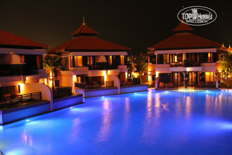 Отель Anantara Dubai The Palm Resort and Spa 5* расположен на искусственном насыпном острове The Palm Jumeirah, в восточной части кольца, окружающего основную пальму. Отель новый, открыт в сентябре 2013 года, поэтому кое-что еще не функционировало полностью. Отель принадлежит сети отелей Anantara. Основная часть номеров находится в коттеджах, которые расположены по «берегам» бассейнов. Плюс есть отдельно стоящие виллы и водные виллы. Позади коттеджей расположены два высоких здания, в которых расположены апартаменты для продажи.