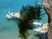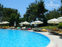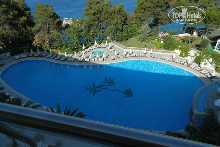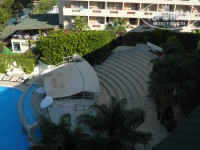 На территории очень чисто, спокойно, можно по лестнице спуститься в бухточку, там есть, так сказать, балконы и на них лежаки, тихо и прохладно. На территории *4 красота, много зелени- красивые цветы, кустики, деревья, и пока идешь по этому прекрасному саду, незаметно выходишь на главный пляж. На нем я была 1 раз, т.к. мне хватало бассейна и бухты.