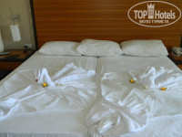 Приехали в отель во второй половине дня, заселили нас сразу, предварительно мы положили в паспорт всего лишь 20$ (на два номера) и попросили номера на последнем этаже с видом на море. Номера хорошие, все работало, единственный минус- у родителей в номере капало с кондиционера, и из-за этого стоял запах сырости. Уборка в номерах производилась каждый день, постоянно выдавалась вода в бутылочках (2 в холодильник, чтоб прохладненькая была и 2 просто), пару раз оставляли по 1$ и нам из полотенец делали красоту на кроватях, мелочь, а приятно. Ночью спать было жарковато, но спасали либо кондиционер, либо открытый балкон.