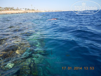 4. Территория отеля и пляжи. В отеле два бассейна с барами, один (нижний с видом на море) с подогревом, территория зеленая, много цветущих кустарников. Мы большую часть времени проводили на море (ради него и ездим в Египет), до пляжа можно ехать на автобусе минут 5 (автобус ходит по расписанию четыре раза в день), но мы чаще ходили пешком, пройтись 15 минут при температуре +25 +28 градусов не сложно (правда в летнюю жару наверно не очень комфортно). Пляж отеля palma beach с понтоном и красивым рифом, на пляже есть душ, туалет, бар с безалкогольными напитками, пляж просторный, лежаков всегда хватает. Несколько дней был ветер и волны и на пляже отеля было не возможно загорать и купаться - может бросить волной на риф, но буквально через 500-700 метров от пляжа отеля начинается бухта Рас Ум Сид, которая закрыта от ветров высокой скалой. В этой бухте расположены платные пляжи с ,песчаным входом в море. Мы были на пляжах fanara beach (расположен недалека от пляжа отеля) и farsha (расположен за отелем club el faraana), стоит 5 $ с человека, пляж farsha понравился больше, так как там есть душ, туалет и он просторнее, на fanara beach мало места, лежаки стоят вплотную и нет ни туалета, ни душа, но заход в море и рифы красивые на обоих пляжах.