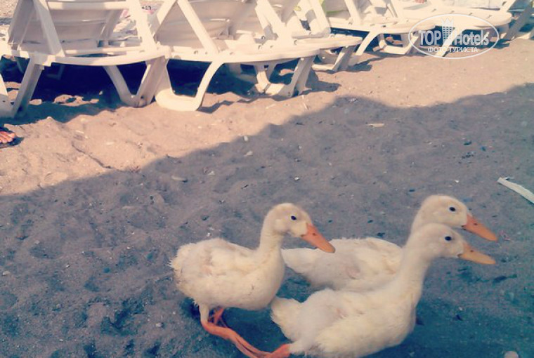 Отель начинается прямо от дороги, довольно оживленной, и уходит вглубь, всего 8 или больше корпусов, которые образуют коридор. Внутри этого коридора вся территория отеля - два бассейна, один с горками (мы не катались, там резвились детишки), ресторан, амфитеатр и т.д. На территории есть минизоопарк, который вызывал у меня боль в сердце, так как все миски грязные, у животных зачастую не было воды, все в плесени. В общем, я периодически капала на мозг мальчикам с ресепшен и тогда животным давали свежую капусту и воду. Там два павлина, куропаточки, кролики. Детям нравится, но запах особенно днем стоит специфический. Если будете в отеле, пожалуйста, поглядывайте на животных, персоналу до лампочки. Но если попросить - сразу приводят вольеры в порядок.