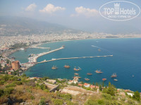 Ездили своим ходом в Аланию, напротив отеля есть остановка, 2 доллара в одну сторону, ехать минут 40. Выезжайте пораньше, тоже жара невыносимая, по ползали по городу как мухи. Но с горы очень красивый вид - смотрите фотографии. Можно съездить, но лучше на машине))