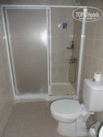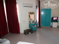 Номер большой, на полу плитка, все приличное, мебель свежепокрашенная. Смотрите фотографии ванной комнаты и номера, без слов понятно. Краны в извести или в мыле, непонятно, браться неприятно. Убирали не каждый день, а раз в 2-3 дня. Символически.