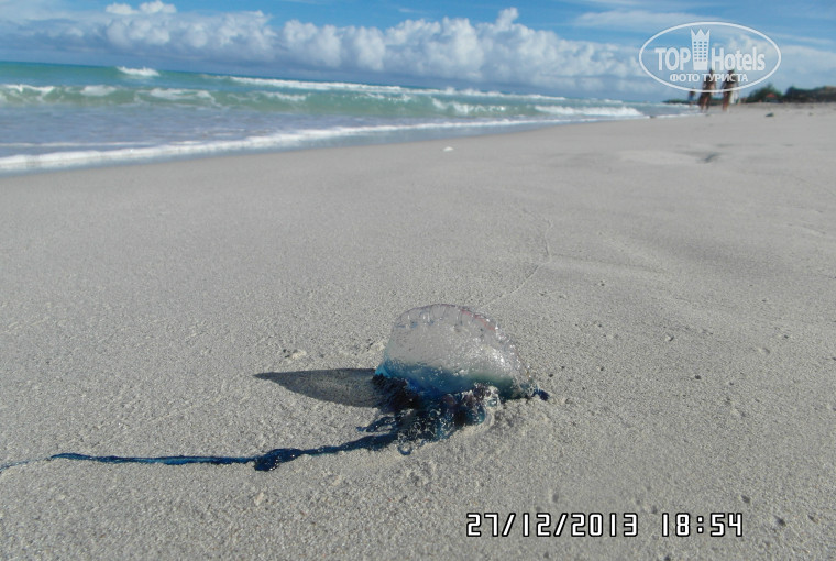 Пляж на Варадеро хороший, но один раз я видела как мужчина ( не служащий, а такой же отдыхающий) достал из воды разбитую бутылку и в воде видела рыбу иглу. На пляж прилетают пеликаны.