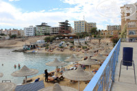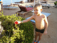 ПЛЯЖ классный, водичка чистая, прозрачная. Порядок по всей территории, ни спичинки, ни бумажки. У нас случайно ветром унесло пластиковый стаканчик, так сразу от куда-то появился уборщик и забрал его со словами "все хорошё". Купаться нужно в тапочках-коралках - там много "недобрых" ежиков, а вытащить иголку из ноги, говорят, 10$. Тапочки можно купить в магазине на территории Сфинкса за 4$ детские и женские, 5$ мужские, в магазине напротив отеля можно купить за 3$. Рыбок много, только надо отплыть немного в сторону. Там риф и между кораллами их очень много, синие, желтые, большие и маленькие. И самое главное, не слышно возгласов "чучхели, горячая кукуруза". Вода очень солёная, нырнуть по глубже не получается, выталкивает. Когда обсохнешь, прямо видно соль на теле, хоть руками сметай, благо душ на пляже есть.
