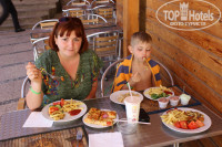 ПИТАНИЕ хорошее. Всегда мясо и рыба, фруктов и овощей много, десертики вообще отпад. Тут же при вас сделают омлет, яичницу или блинчики. Всё довольно приличного качества. Читали отзывы о том, что некоторые травились, с горшка не слазили. Ничего подобного с нами не случилось, хотя у нас желудки оооочень чувствительные к незнакомой пище. Видели мы таких, положит блинчики с джемом, потом идет дальше и видит гуляш из баранины и туда же, сверху помидоров и рядом риса с макаронами и все это зальет овощным рагу. После этого можно ли не сесть на горшок?