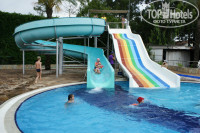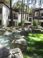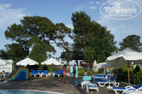 Мы были 27.05.2013, приехали в отель около восьми утра, пока оформлялись дети уже ели апельсины которые лежали на скамейке. Заселили нас сразу, чемоданы к бунгало довозят на машинке, после чего парень стоял и долго ждал чаевых….. Номер конечно без излишеств, но нас вполне устроил. Заселяясь в бунгало будьте готовы помимо вас там периодически появляются насекомые. У нас были маленькие мураши проходящие в санузле по мраморной столешнице одним и тем же маршрутом. Обработка каким-то средством во время уборки помогает на время избавится от них. Так как всё в соснах в номере всегда свежо, кондиционер мы не включали. Территория большая очень ухожена, живут утки. Что касается еды нам опять же всё понравилось, обслуживание хорошее, докладывают сразу. Бесплатный апельсиновый фреш по утрам. Апельсин вообще было много, а они там ух…. какие вкусные! Мороженое платно, всё то же что и у нас. Не забывайте что система Всё включено, а не Ультра все включено, в некоторых отзывах такие претензии встречаешь диву даёшься. Из алкоголя бесплатно вино и пиво, по вечерам в баре мы брали Джин с тоником. Нам этого хватало. В основном были на детском бассейне с горками вода хорошая, хлоркой не воняет! к 11 часам делали закуски из теста с разными начинками, хот доги. Анимация работала на отлично и в первой половине на бассейне и вечером. Большое преимущество русских отдыхающих. В детском клубе девчонки молодцы! Честно сказать единственный минус - это спа-центр и хамам. Я любительница спа, мой вам совет не тратить там деньги. Как бы вас туда не тянули. Выйдя из отеля через дорогу есть большой базарчик, мы там покупали клубнику и тутовник, домой всё там набрали текстиль, коврики, сумки, восточные сладости сувениры. Впечатления хорошие, могу рекомендовать как семейный отель.