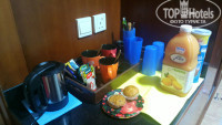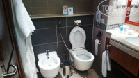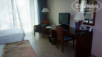 Отказались от 3-ей дополнительной кровати для сына, так как в стандартном номере с балконом достаточно просторные две кровати, я не люблю тесноту на кровати, но мы прекрасно вдвоём с мужем расположились на одной, а сын на другой. Пока распаковывали чемоданы принесли в качестве комплимента фрукты на тарелочках с ножом и белоснежной салфеткой. Опять приятно! Номер чистый, в серо-голубых тонах, с ковриками под ногами, большим зеркалом до пола. Телевизор (три российских канала - все хорошо показывают через Германию), утюг, гладильная доска, фен, тапочки, вафельные белые халаты, чайный уголок (чайничек на 3 чашки чая, 3 чашки с маленькими ложечками, каждый день бесплатно пополнялся 3-мя бутылочками воды, докладывались пакетики чая и кофе, по три упаковочки сливок для кофе, сахар). Так что банку кофе, что я взяла из дома, так и не открыла. Жить можно! А вот про супчики не забудьте! Они спасали. Хорошо, что взяла доп. пластиковые стаканы и пластиковые глубокие тарелочки, целлофановые пакетики, эта мелочь очень пригодилась. Взяла большие ложки, вилки, штопор, открывалку, нож. Пригодилось почти всё, кроме штопора. Баккарди открыли и без него. Постель меняли каждый день. Иногда оставляли чаевые по 1$, но это потому что нам было хорошо, а иногда и не оставляли, вообщем, как нам хотелось. Номера убирали мужчины (наверно, индусы, по виду). Очень всё аккуратно, добросовестно. Вечером стучали и спрашивали, не желали бы мы еще чего. Нет ли проблем? Смело просите - всё дадут. Нам не хватало когда сахару, когда маленького полотенца для рук, когда доп. одеяло. Розетки в номере нестандартные. Один переходник (спросить на ресепшене в службе техобслуживания "адаптер", они поймут) мы попросили, а еще один мы привезли с собой из дома, его купили ранее в ОАЭ. Заряжали планшет, телефоны, с двумя адаптерами хорошо - не мешаем друг другу своё заряжать. Обошлись без интернета. Хотя в номере видели интернет-кабель, но не стали покупать недельный пакет 300 дирхам (прибл. 3000 руб. на неделю) за интернет, только чтоб сообщить родным, что всё хорошо и когда прилетаем. Послали два раза смс и порядок! Как хорошо, что интернет не отнимал время и больше проводили отдых активно, а не лёжа на кроватях. В ванной комнате душ боковой, душ потолочный, на стене металлическая ручка для инвалидов, да и чтоб держаться устойчиво. Есть бордюрчик небольшой на полу, за него зашел и ты уже под душем, вода уходит в пол. Санузел совмещен с ванной комнатой. Рядом с туалетом есть биде, а еще шланг рядом с туалетом к стенке пристроен. Мы всё спорили, он выполняет функцию биде или его струёй уборщики моют туалет. Можете смеяться, мы использовали в обоих случаях. Так удобно. Хочу такой домой! Каждый день ванная комната пополнялась мини-шампунями, мылом, кондиционером для волос, лосьоном для тела, гелем для душа, шапочками для волос. Был мини-набор ватных дисков с пилочкой. Вообщем из дома нужно было взять только три вещи для ванной комнаты: мочалку, зубную пасту и зубную щетку - и всё! остальное всё есть. Спасибо, что, предоставляя каждому по халату и тапочкам, отель решил проблему не загромождать чемоданы ненужными вещами (а оставить место для покупок, сувениров). В номере бесплатный кодовый сейф, достаточно вместимый. А еще есть наборчик - ниточки с иголочкой и 2-мя рубашечными пуговичками.