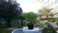Только один многоэтажный отель Le Meridien Al Aqah Beach Resort 5*. Ходили туда на экскурсию. Тоже очень понравился. Бассейны там глубже (видели дайвингистов), мини-зоопарк, уличные шахматы, гольф, большой детский клуб Пингвин. Пляж обоих отелей разделен только естественными камнями. Лежаков пустых тоже было много. Семьям с детьми наверно лучше в Le Meridien. Наверно...
